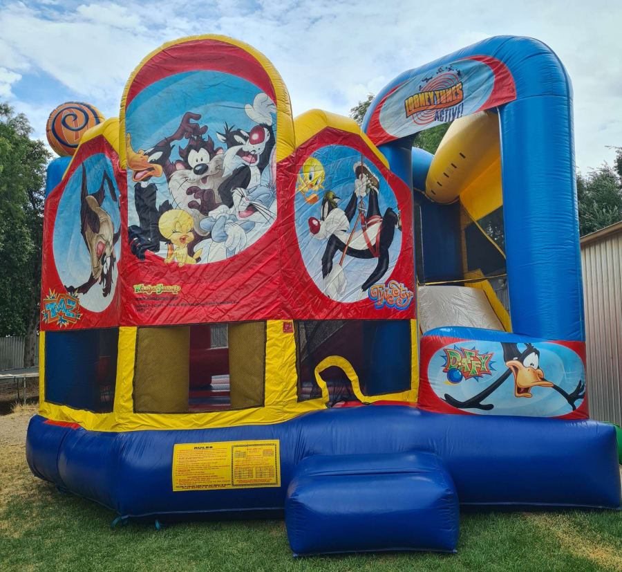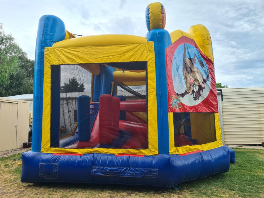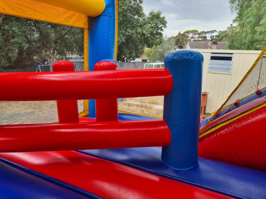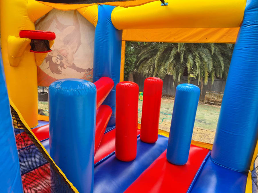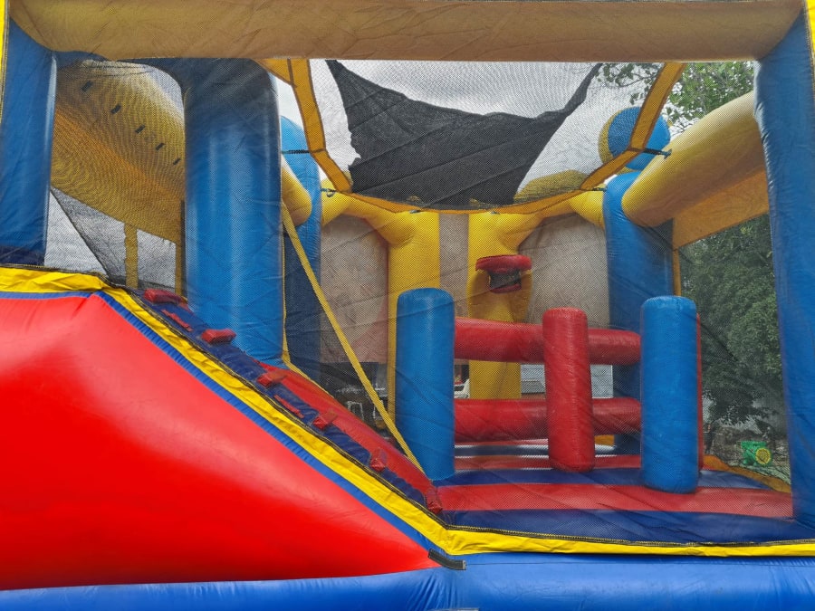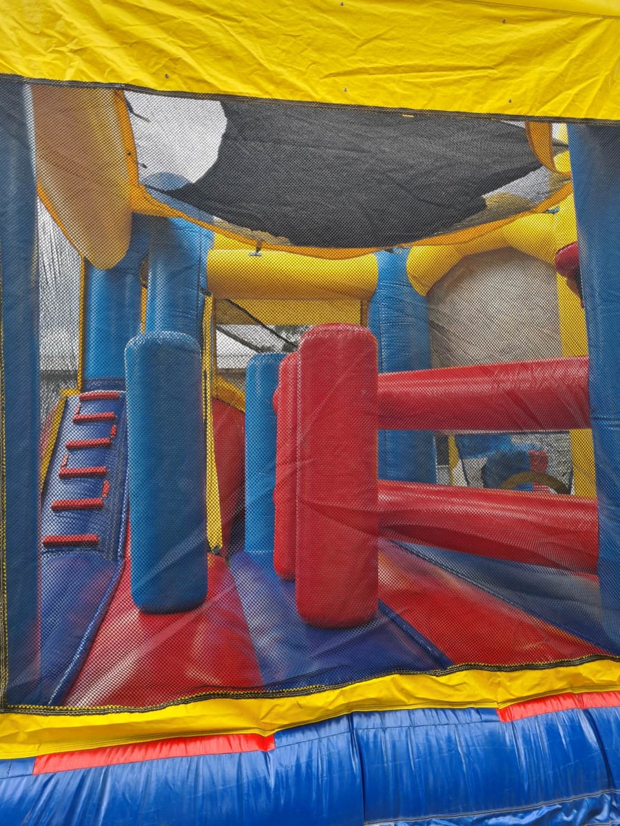 This is one of our biggest castles which features pop up obstacles, climbing stairs, slide, jump area