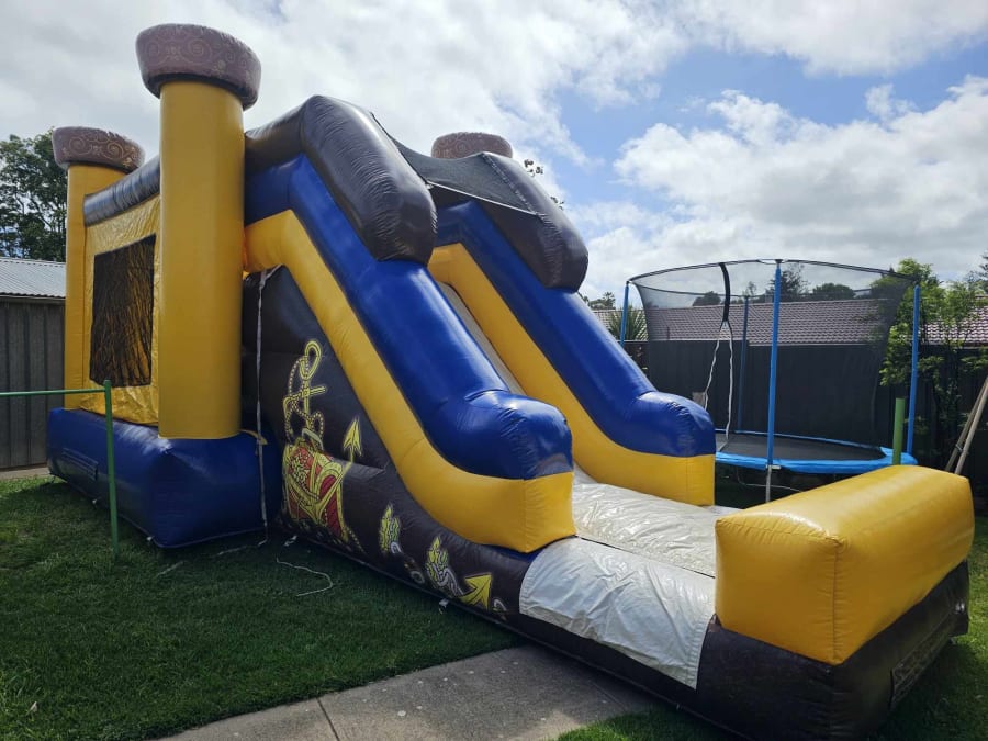 Hi Sam, I'm after the Pirate XL Combo for Jan 1st in Elizabeth 4hr hire 12-4pm on clean green grass and can use pegs in the ground. Is it available? Thanks
