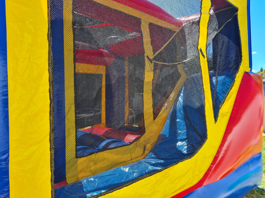 Features: bounce area, Climbing Stairs, Slide and basketball ring (supply own pvc balls)