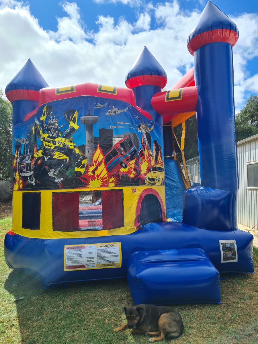 Features: bounce area, Climbing Stairs, Slide and basketball ring (supply own pvc balls)