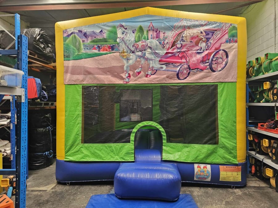 This castle features a jumping area, climbing stairs, internal slide and a basketball hoop (Supply own plastic ball)