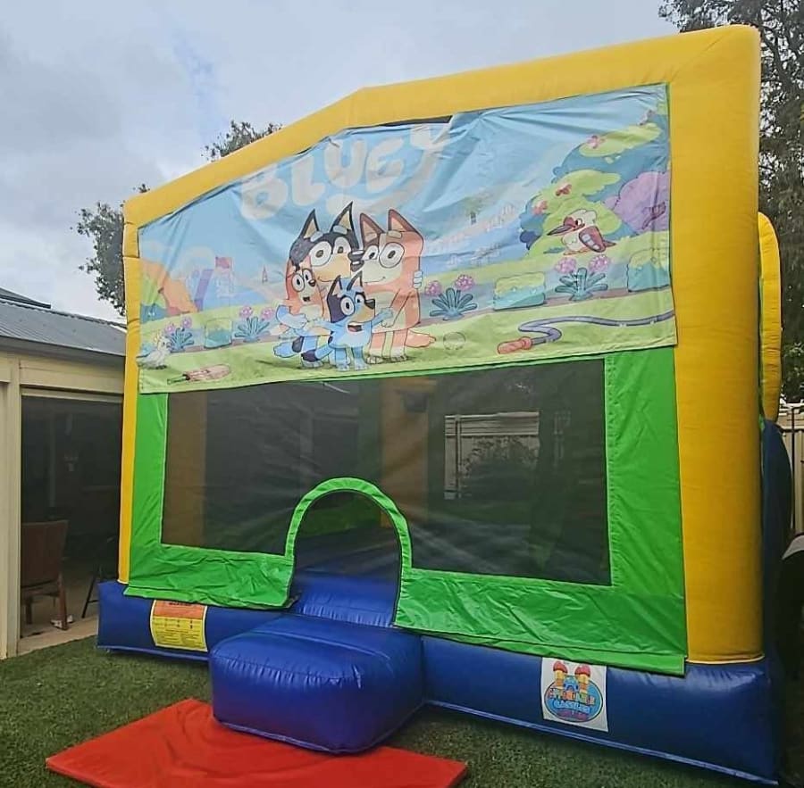 This castle features a jumping area, climbing stairs, internal slide and a basketball hoop (Supply own plastic ball)