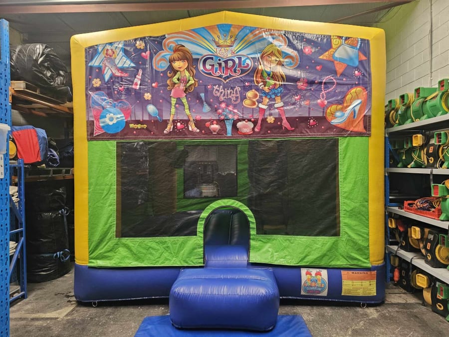This castle features a jumping area, climbing stairs, internal slide and a basketball hoop (Supply own plastic ball)