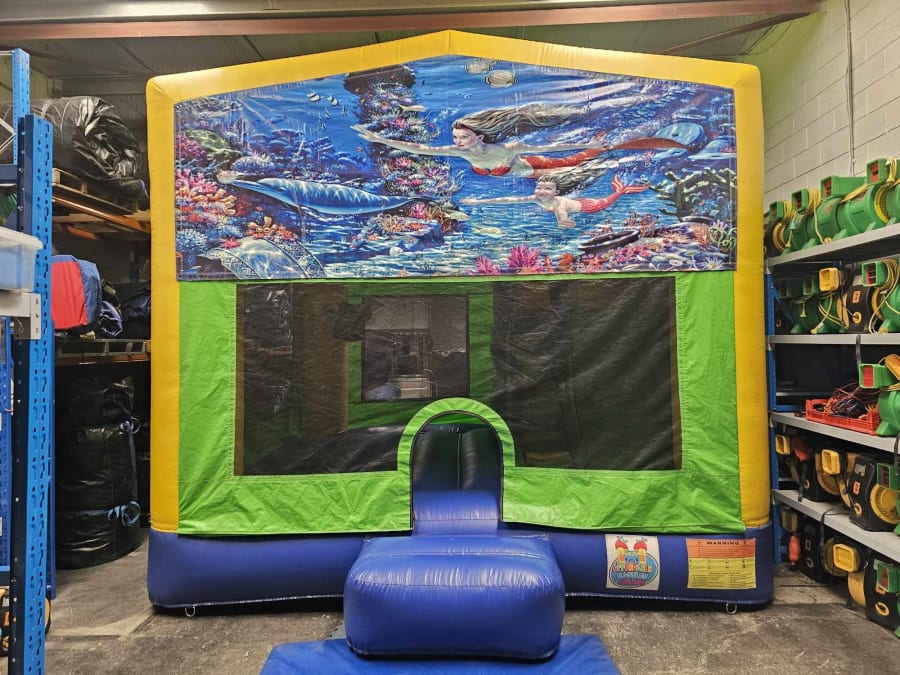 This castle features a jumping area, climbing stairs, internal slide and a basketball hoop (Supply own plastic ball)