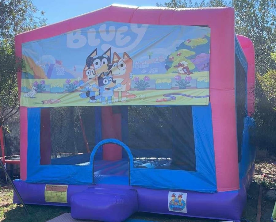 This castle features a jumping area, climbing stairs, internal slide and a basketball hoop (Supply own plastic ball)