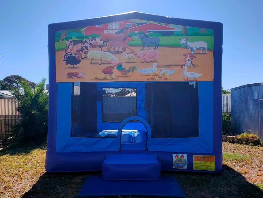 This castle features a jumping area, climbing stairs, internal slide and a basketball hoop (Supply own plastic ball)