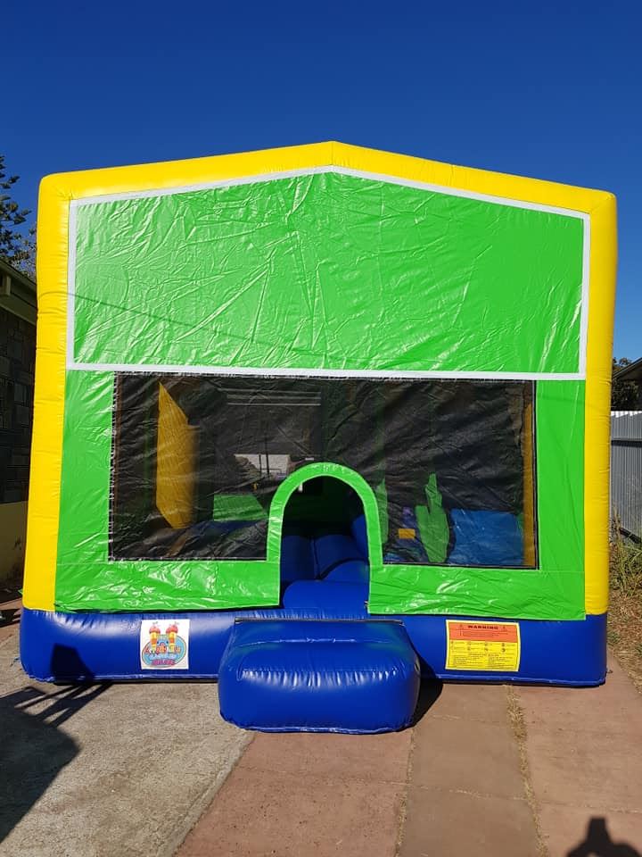 This castle features a jumping area, climbing stairs, internal slide and a basketball hoop (Supply own plastic ball)