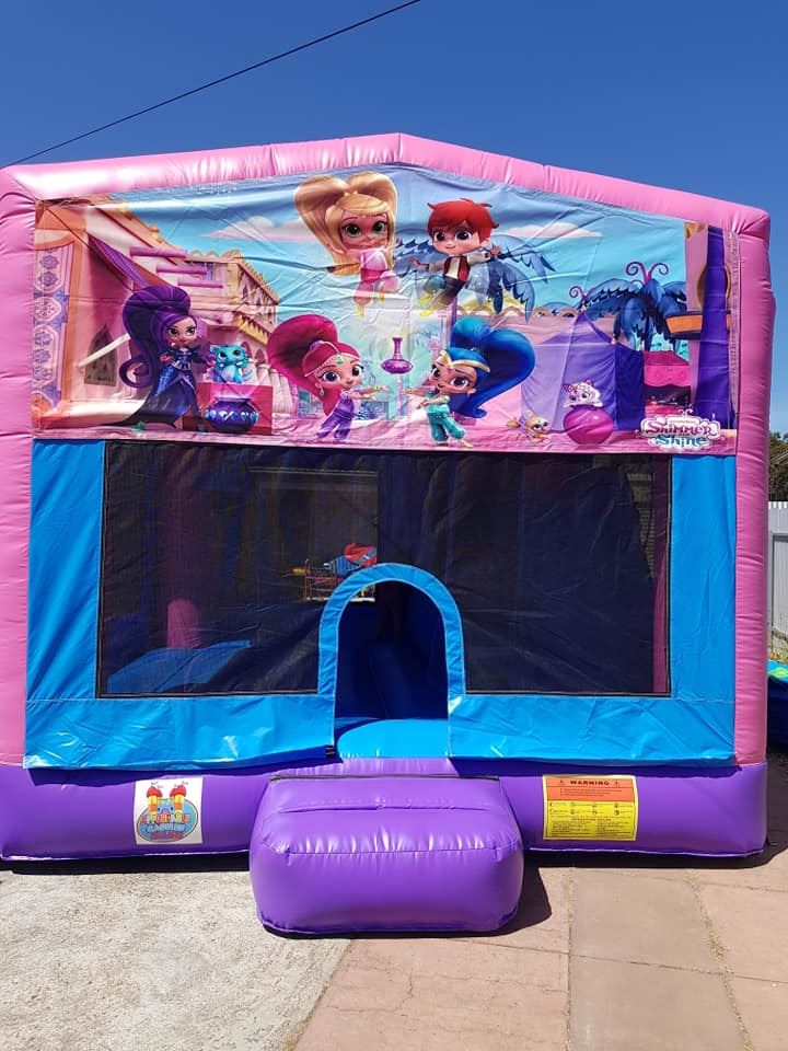 This castle features a jumping area, climbing stairs, internal slide and a basketball hoop (Supply own plastic ball)