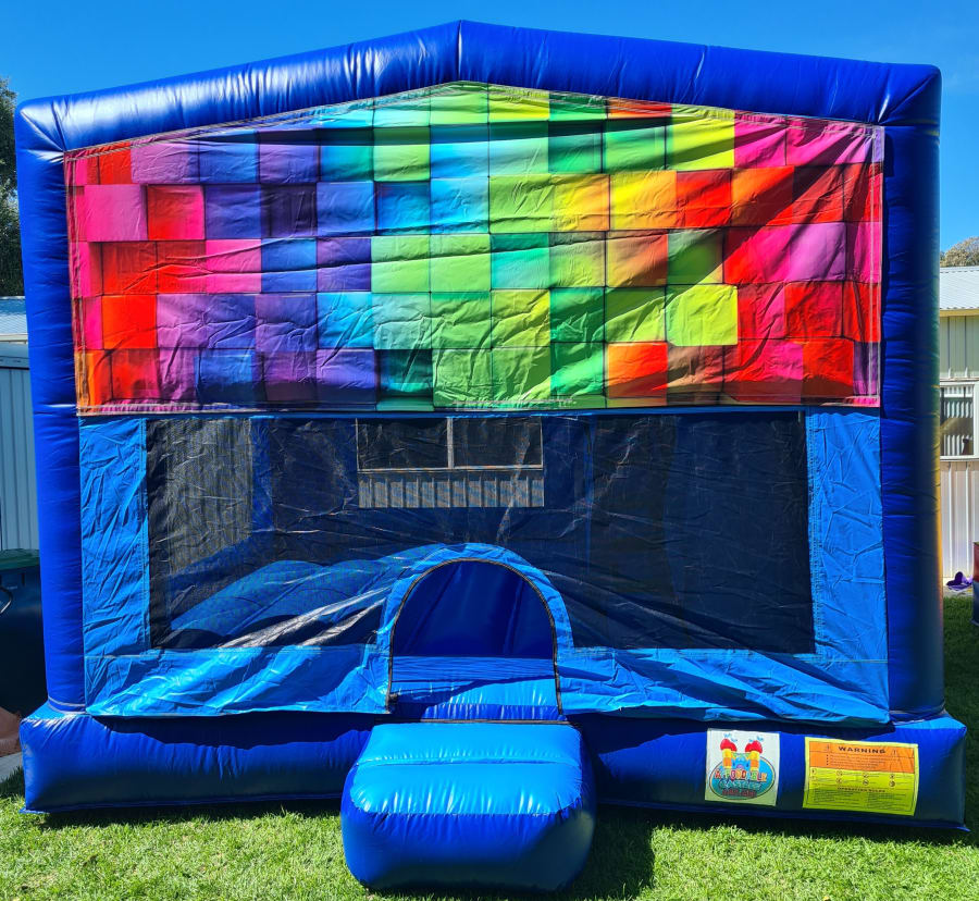 This castle features a jumping area, climbing stairs, internal slide and a basketball hoop (Supply own plastic ball)
