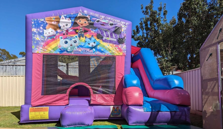 Example to book this castle Hi Sam, I'm after the GC5 Gabbys Dollhouse jumping castle for Jan 1st in Elizabeth 4hr hire 12-4pm on green grass and can use pegs, is it available? (your name)