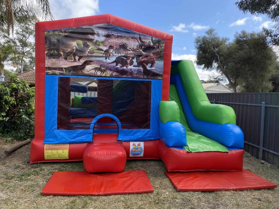 Example to book this castle Hi Sam, I'm after the BC5 Dinosaur jumping castle for Jan 1st in Elizabeth 4hr hire 12-4pm on green grass and can use pegs, is it available? (your name)