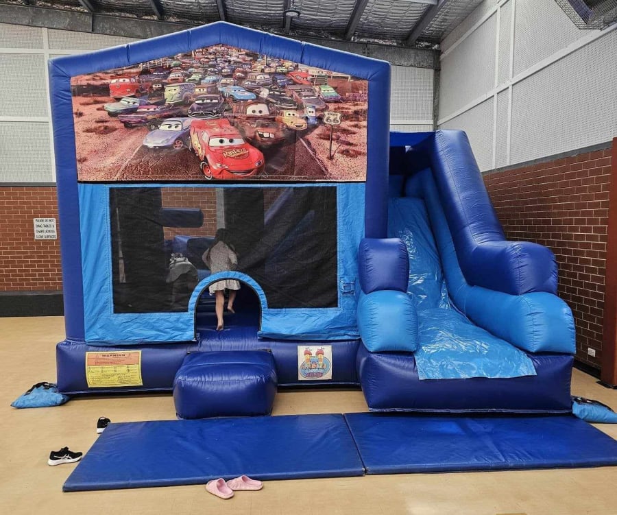 Example to book this castle Hi Sam, I'm after the UC5 Disney Cars jumping castle for Jan 1st in Elizabeth 4hr hire 12-4pm on green grass and can use pegs, is it available? (your name)