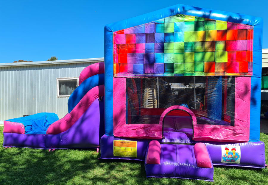 GC6 Colourful Rainbow Wet/Dry Jumping Castle Combo Hire Adelaide