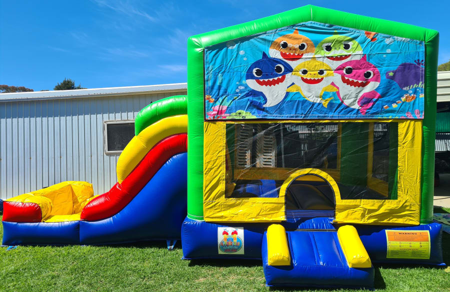BC6 Baby Shark Wet/Dry Jumping Castle Combo Hire Adelaide