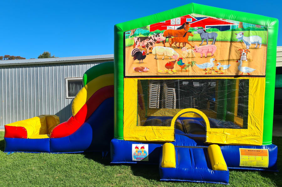 BC6 Farm Animals Wet/Dry Jumping Castle Combo Hire Adelaide