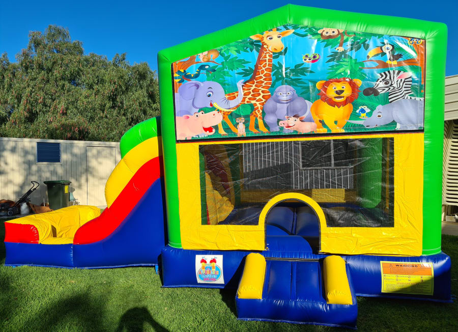 BC6 Jungle Safari Animals Wet/Dry Jumping Castle Combo Hire Adelaide