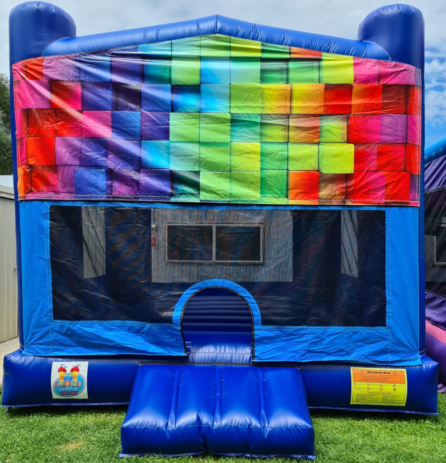Example to book this castle Hi Sam, I'm after the U44 Colourful Rainbow jumping castle for Jan 1st in Elizabeth 4hr hire 12-4pm on green grass and can use pegs, is it available? (your name)
