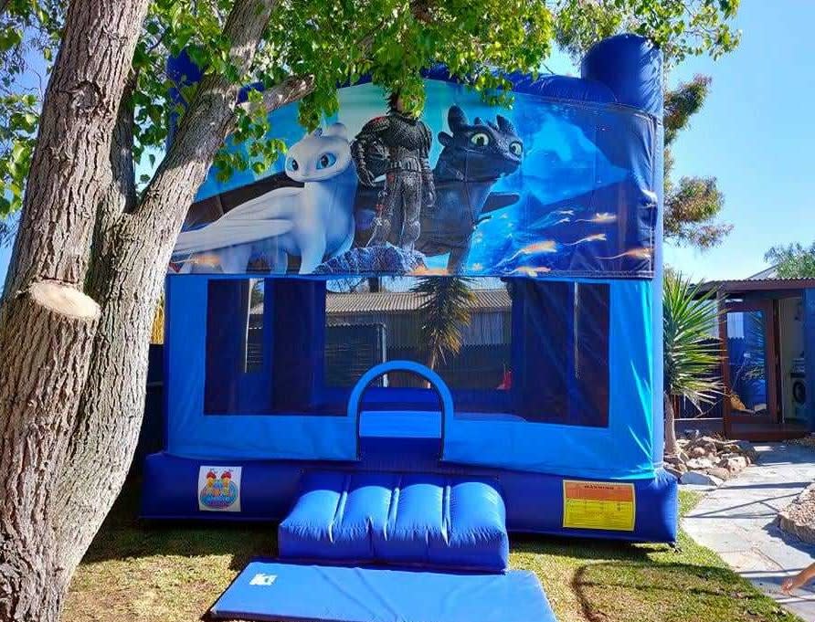 Example to book this castle Hi Sam, I'm after the U44 How To Train Your Dragon jumping castle for Jan 1st in Elizabeth 4hr hire 12-4pm on green grass and can use pegs, is it available? (your name)