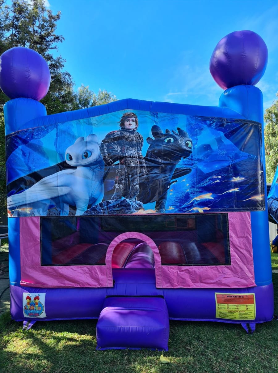 Example to book this castle Hi Sam, I'm after the G44 How To Train Your Dragon jumping castle for Jan 1st in Elizabeth 4hr hire 12-4pm on green grass and can use pegs, is it available? (your name)