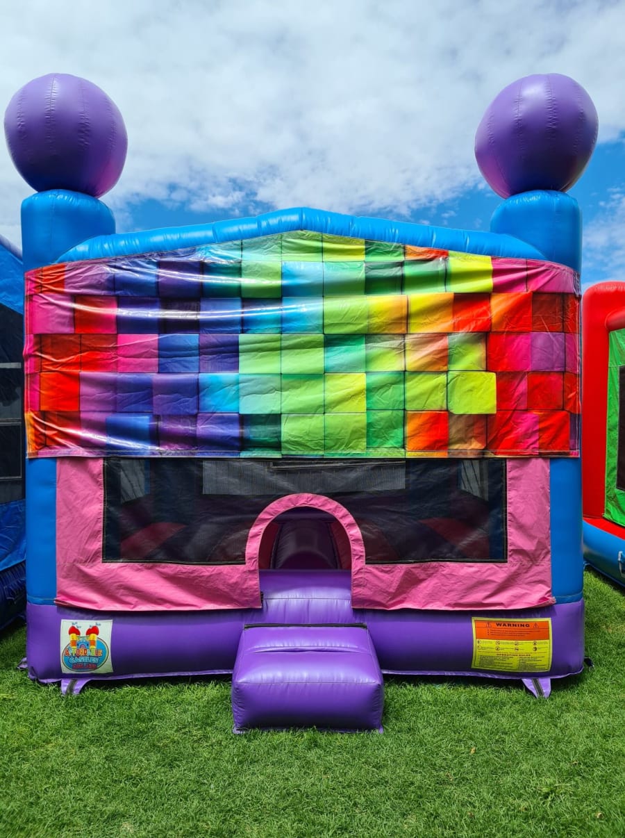 Example to book this castle Hi Sam, I'm after the G44 Colourful Rainbow jumping castle for Jan 1st in Elizabeth 4hr hire 12-4pm on green grass and can use pegs, is it available? (your name)