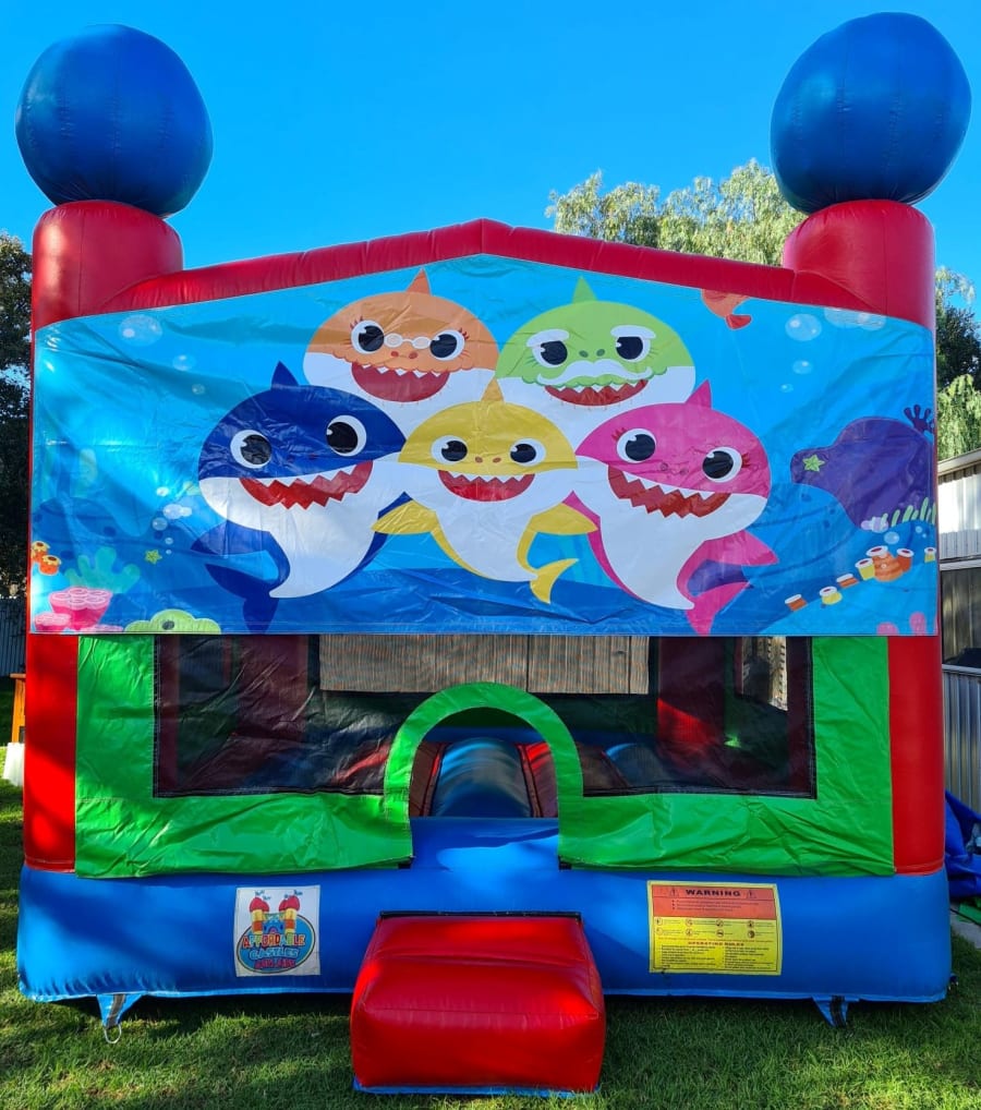 Example to book this castle Hi Sam, I'm after the B44 Baby Shark jumping castle for Jan 1st in Elizabeth 4hr hire 12-4pm on green grass and can use pegs, is it available? (your name)