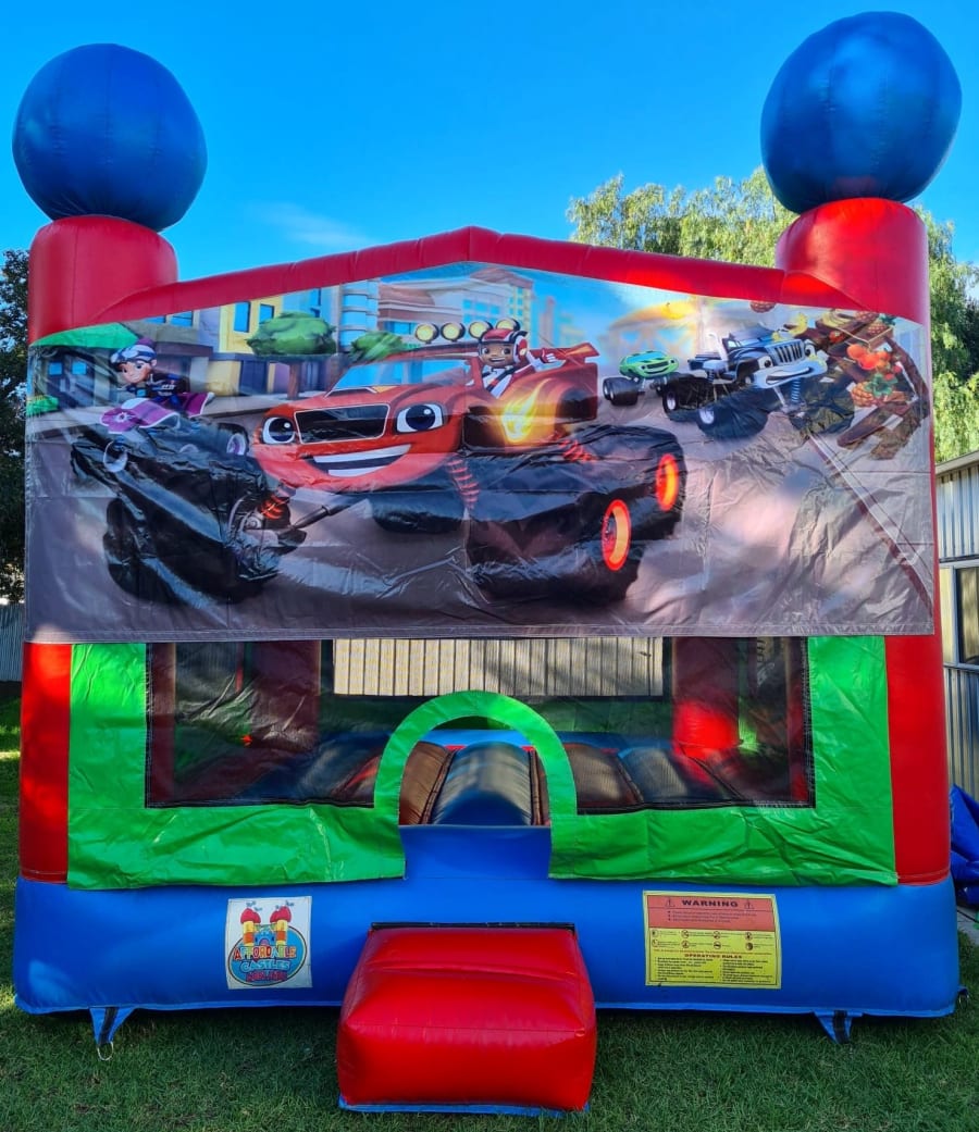 Example to book this castle Hi Sam, I'm after the B44 Blaze and the Monster Machines jumping castle for Jan 1st in Elizabeth 4hr hire 12-4pm on green grass and can use pegs, is it available? (your name)