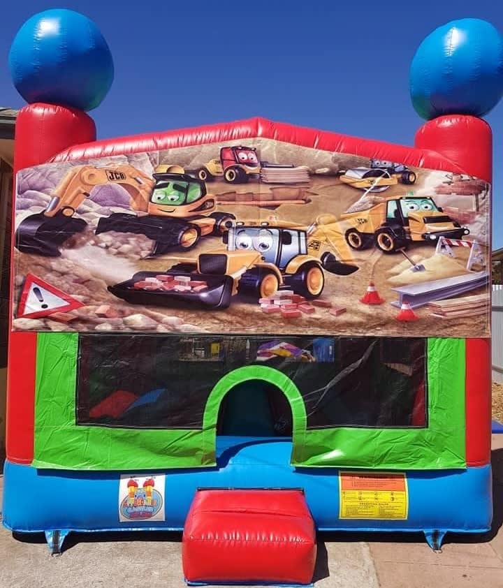 Example to book this castle Hi Sam, I'm after the B44 Construction jumping castle for Jan 1st in Elizabeth 4hr hire 12-4pm on green grass and can use pegs, is it available? (your name)