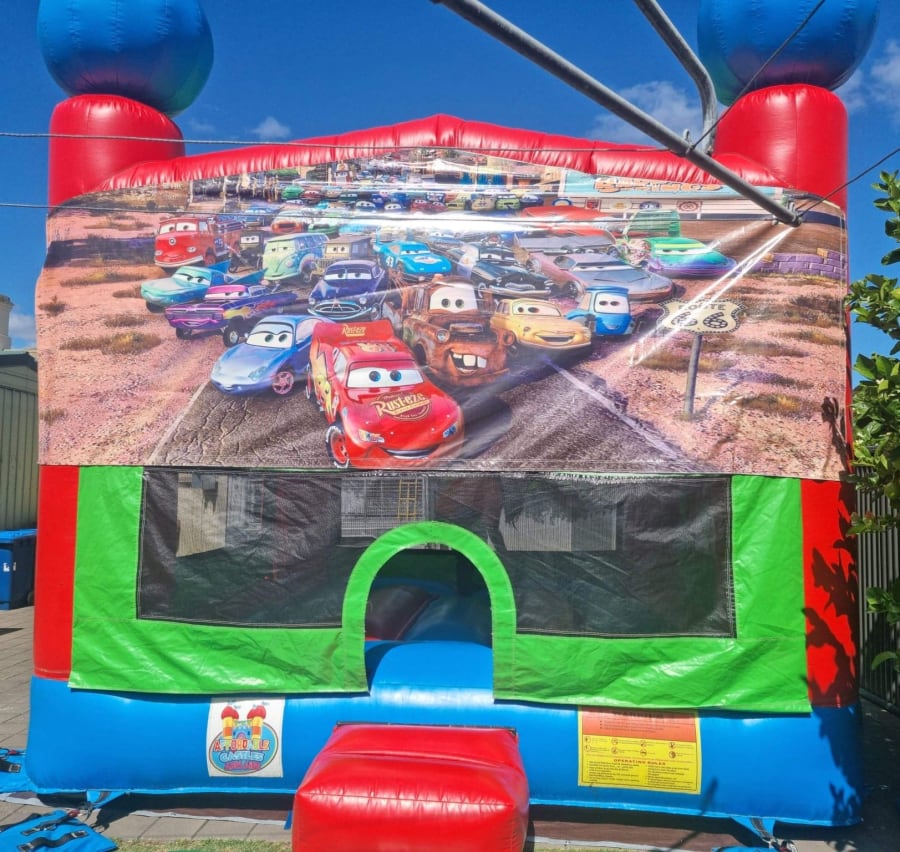 Example to book this castle Hi Sam, I'm after the B44 Disney Cars jumping castle for Jan 1st in Elizabeth 4hr hire 12-4pm on green grass and can use pegs, is it available? (your name)