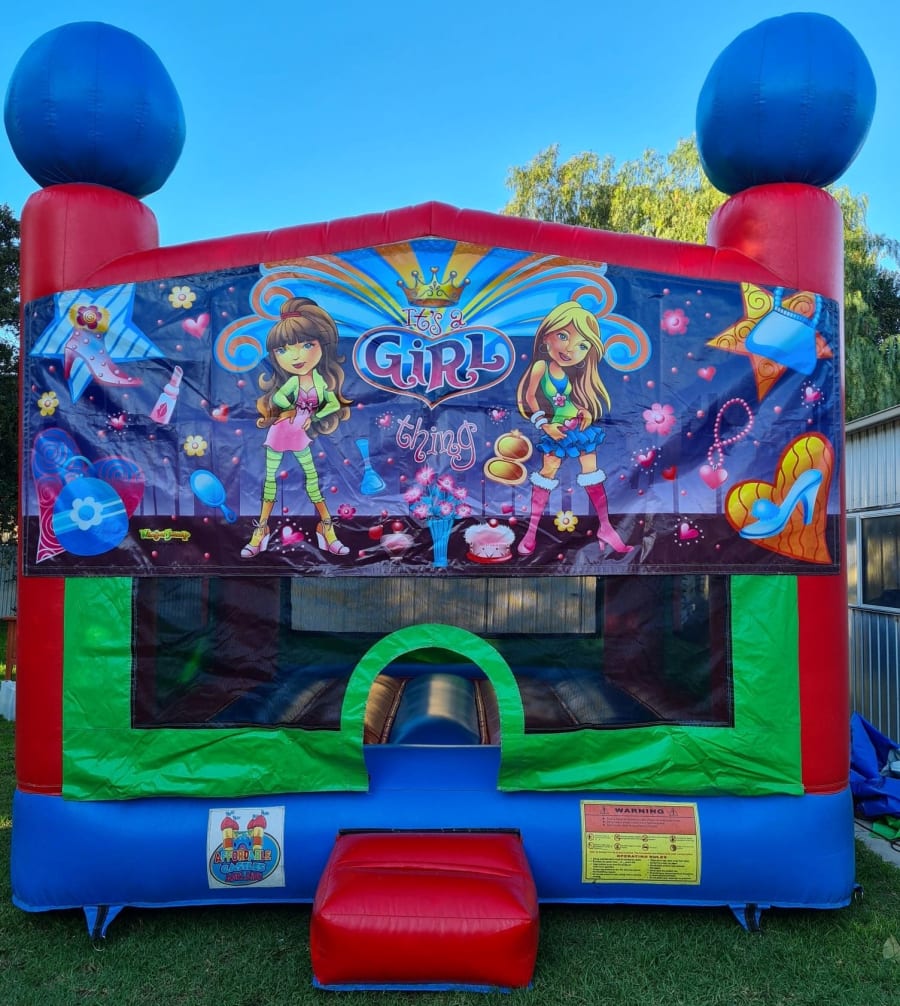 Example to book this castle Hi Sam, I'm after the B44 Its a Girl Thing jumping castle for Jan 1st in Elizabeth 4hr hire 12-4pm on green grass and can use pegs, is it available? (your name)