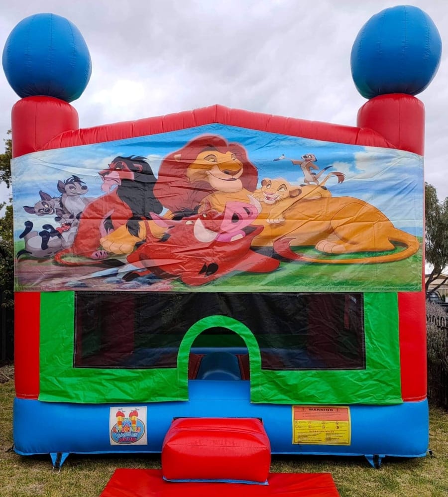 Example to book this castle Hi Sam, I'm after the B44 Lion King jumping castle for Jan 1st in Elizabeth 4hr hire 12-4pm on green grass and can use pegs, is it available? (your name)