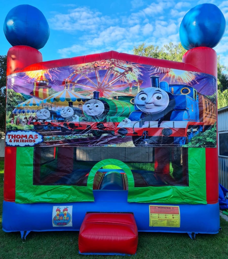 Example to book this castle Hi Sam, I'm after the B44 Thomas The Tank Engine jumping castle for Jan 1st in Elizabeth 4hr hire 12-4pm on green grass and can use pegs, is it available? (your name)