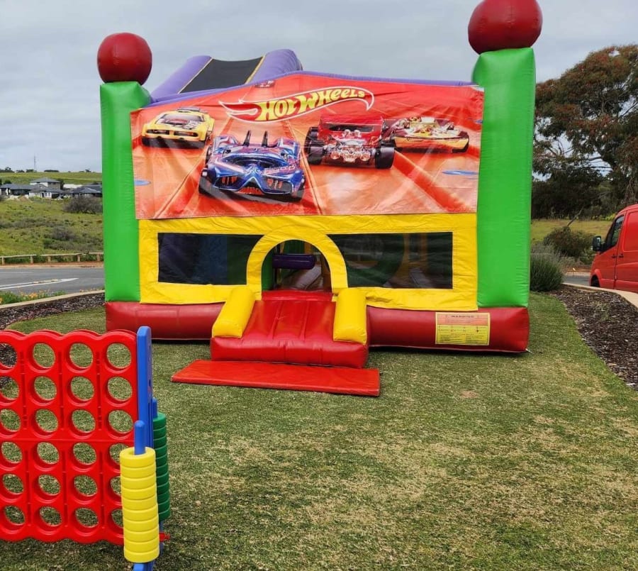 Hi Sam, I'm after the Superslide Hot Wheels jumping castle for Jan 1st In Elizabeth for a 4hr hire 12-4pm on green grass and can use pegs, is it available? (your name)